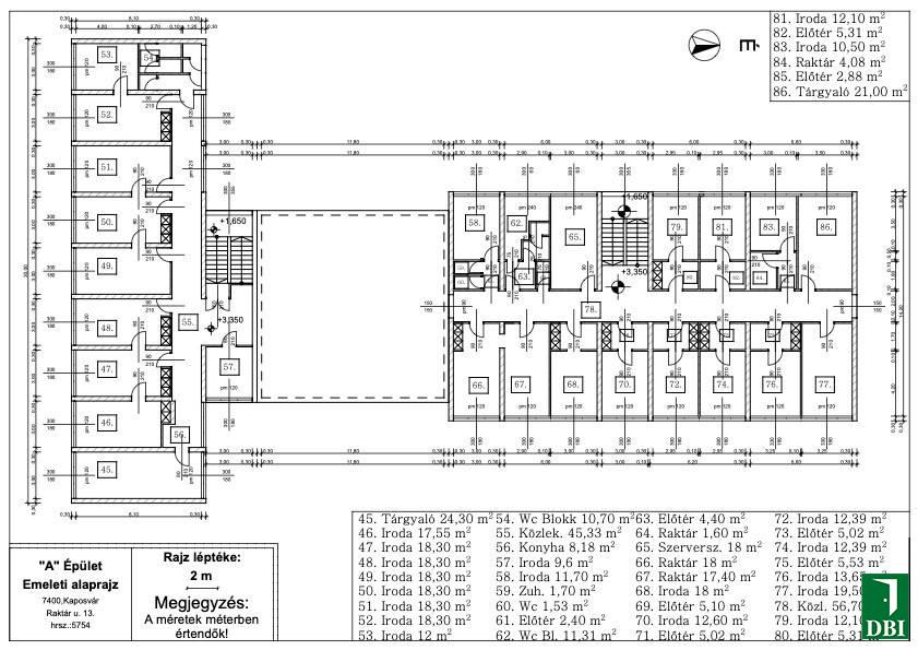 Bérelhető irodák területe: 12-24,3 nm